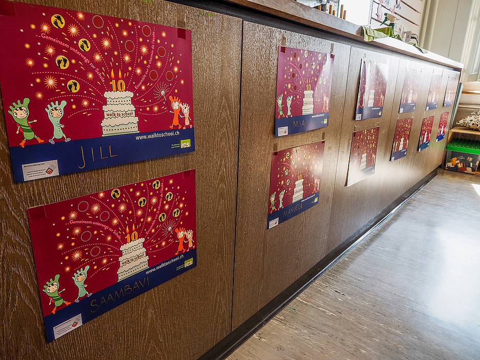 Weg zur Schule sei etwa einen Kilometer lang, erzählt sie. Dominik braucht zehn Minuten, kommt aber am liebsten mit dem Velo oder Trotti. Saambavi sei ebenfalls zehn Minuten unterwegs, betont sie, allerdings zu Fuss. Die Klasse 1/2c von Sheila Kehrli von der Primarschule in Roggwil im Kanton Bern sitzt im Kreis vor der Wandtafel. Sie sind Feuer und Flamme, über ihre Erfahrungen und Erlebnisse auf dem Schulweg zu berichten. Mia schwärmt von der regelmässigen Begegnung mit einem Hund, den sie streicheln kann. Auch Niklas freut sich über die tierischen Begegnungen, genauer gesagt mit der Katze Jacky. Manuela wie auch viele andere ihrer Klasse schätzen es, zusammen mit anderen Kindern den Schulweg zu gehen und dabei Spass zu haben. Zurzeit nimmt