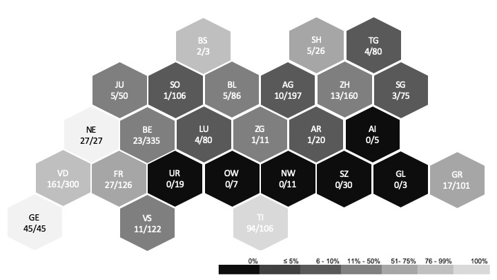 Von den 2131 Gemeinden (Stand: 11. März 2024) verfügen 459 über ein Parlament. Im luzernischen Ebikon wird sich im September 2024 der Einwohnerrat konstituieren, in Tafers soll es im Jahr 2026 zur Konstituierung des Generalrats kommen, somit wird es zwei weitere Parlamente geben.