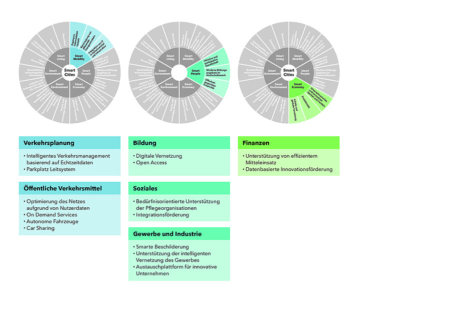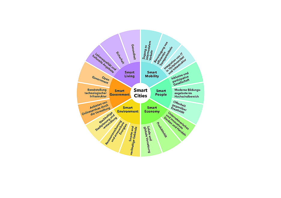 Die Smart-City-Thematik ist enorm komplex und vielschichtig. Inhaltlich fokussiert sie auf die sechs Bereiche Smart Mobility, Smart People, Smart Economy, Smart Energy and Environment, Smart Government und Smart Living (vgl. Grafik 1). Damit deckt die Smart-City-Thematik alle kommunalen Aufgabenbereiche ab.