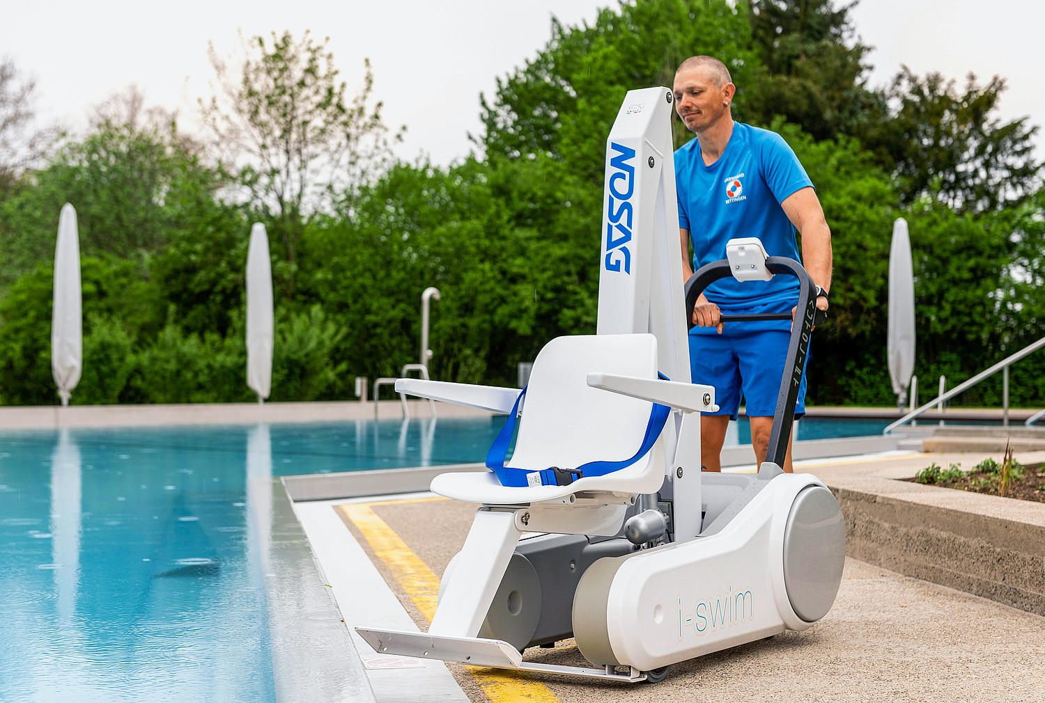 Vor knapp drei Jahren wurde der Aussenraum des Bettinger Gartenbades neu gestaltet. Ein wichtiger Faktor bei der Neukonzeption war, dass das Bad gleichzeitig auch barrierefreier wird. Somit rückte der Behindertenparkplatz von ganz hinten nach ganz vorne, wurden der Zugang zum Gartenbad optimiert (Zugang zum Kassenhäuschen, Gefälle des hindernisfrei begehbaren Weges ab Kiosk bis zum Schwimmbereich), separate Garderoben und Duschen erstellt und ein Lift für einen hindernisfreien Einstieg ins Bad angeschafft. Dabei wurde die Gemeinde von der Fachstelle der Pro Infirmis «Hindernisfreies Bauen» unterstützt und beraten.