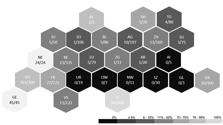 Von den 2121 Gemeinden (Stand: 1. Januar 2025) verfügen 456 (21 Prozent) über ein Parlament. In Tafers (FR) soll es im Jahr 2026 zur Konstituierung eines Generalrats kommen.
