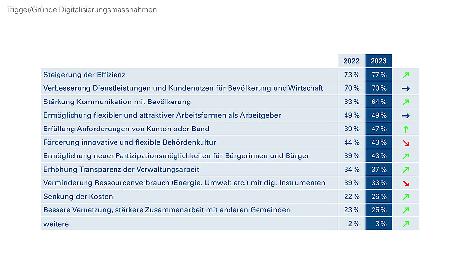 Die zentralen Beweggründe (Nutzen) der digitalen Transformation sind identisch mit den Vorjahren (siehe Abb. 1).