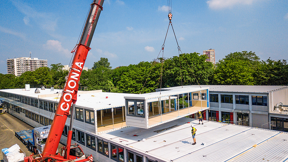 Das puzzleartige Zusammensetzen und wieder Auseinandernehmen ist auch die Grundidee der Containergebäude von FAGSI. Das Unternehmen der ALHO-Gruppe aus Wikon (LU) hat sich auf die Vermietung und den Verkauf von FAGSI-Containergebäuden spezialisiert. Bereits zum zweiten Mal wurde die Schulanlage Oescher in Zollikon (ZH) am Zürichsee mit Hilfe dieser originellen Bauweise erweitert. «Eine Besonderheit unserer Gebäude ist, dass man sie problemlos zurückbauen und in ihre einzelnen Einheiten zerlegen kann», erklärt Nico Kreyss, Leiter Vermietung bei der FAGSI. Die Kundschaft nutzt die Containergebäude nur so lange, wie sie sie tatsächlich benötigt. Im Sinne der Kreislaufwirtschaft nimmt FAGSI die Container dann wieder zurück. Sie werden gereinigt, aufbereitet und an einem anderen Ort erneut eingesetzt.