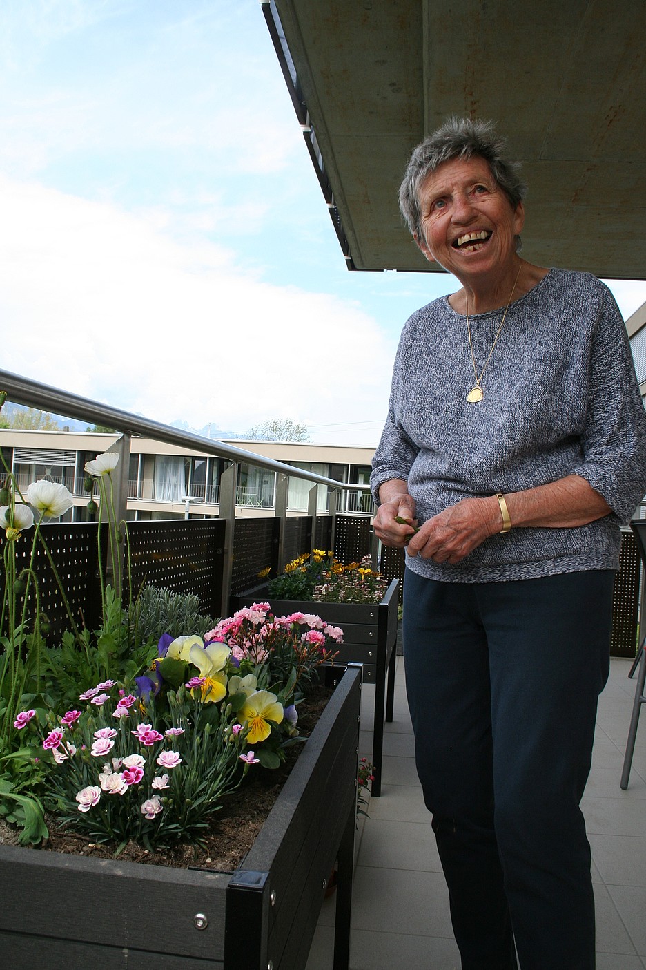 Rosette Pasche stellt einen Topf mit einer Fuchsia wieder gerade hin, nachdem ihn der Wind umgeblasen hat. Dann giesst sie sorgfältig die anderen Pflanzen auf ihrem Balkon und zupft da und dort ein welkes Blatt weg. Rosa Nelken, bunte Stiefmütterchen, Papyrus, aber auch Basilikum und Schnittlauch: Rosette Pasche hat einen grünen Daumen. Es war ihr wichtig, in ihrer neuen Wohnung genug Platz zu haben, um ihrer Leidenschaft weiterhin nachzugehen. Diesen Herbst feiert sie ihren 90. Geburtstag. Und es wird ein Jahr her sein, dass sie aus ihrem grossen Haus in Lavey gezogen ist, wo sie geboren wurde und ihr ganzes Leben verbracht hat. «Noch vor einem Jahr habe ich dort meinen Gemüsegarten gepflegt.»