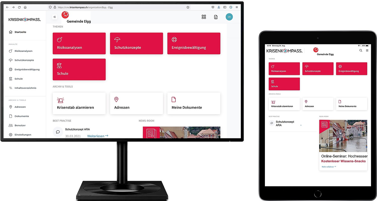 Diese rasch und mobil verfügbare Hilfestellung ist entscheidend für die Schadensbegrenzung. Mit dem Krisenkompass®, dem digitalen Wegweiser zu Analyse, Schutz und Bewältigung, erhalten die Verantwortlichen sofort greifbare, topaktuelle Unterlagen sowie Praxisbeispiele für die Ausbildung. Ausserdem werden sie intuitiv und effizient durch jede kritische Situation gelotst. Die App ist online und offline verfügbar und kann auf dem Smartphone, dem Tablet oder dem Notebook genutzt werden.