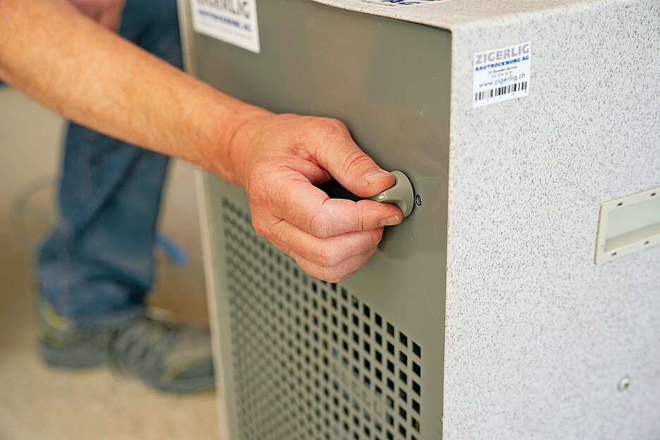 Besonders wichtig ist der effiziente Einsatz von Entfeuchtern bei jenen Unternehmen, die sich ganz auf die Trocknung spezialisiert haben, beispielsweise die Zigerlig Bautrocknung AG in Bern. «Wir verwenden nur hochwertige Profigeräte, die alle über eine Hygrostatsteuerung verfügen und abschalten, sobald die gewünschte Luftfeuchte unterschritten wird», erklärt Geschäftsleiter Jürg Zürcher. Ob bei der Bautrocknung, der Behebung von Unwetterschäden oder bei Wasserschäden wie bei leckenden Abwasserleitungen oder der überlaufenden Badewanne: Wichtig ist, dass das eingesetzte Gerät für die jeweilige Situation und Raumgrösse richtig dimensioniert ist.