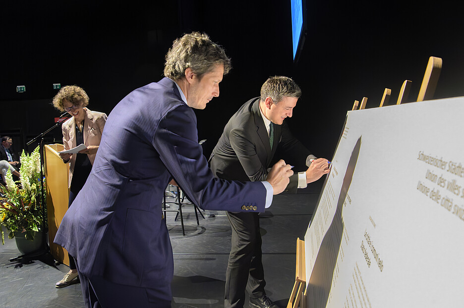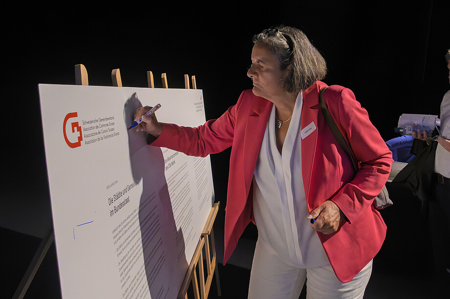 Um den Bund an seine Verantwortung gegenüber den Gemeinden zu erinnern, präsentierte der SGV eine Deklaration der Städte und Gemeinden, die er gemeinsam mit dem Schweizerischen Städteverband anlässlich des 25-Jahr-Jubiläums des Artikels 50 ausgearbeitet hatte. Die Deklaration wird im September an Bundesrat Beat Jans übergeben. An der GV nutzten die Teilnehmerinnen und Teilnehmer die Gelegenheit, die Deklaration zu unterschreiben.