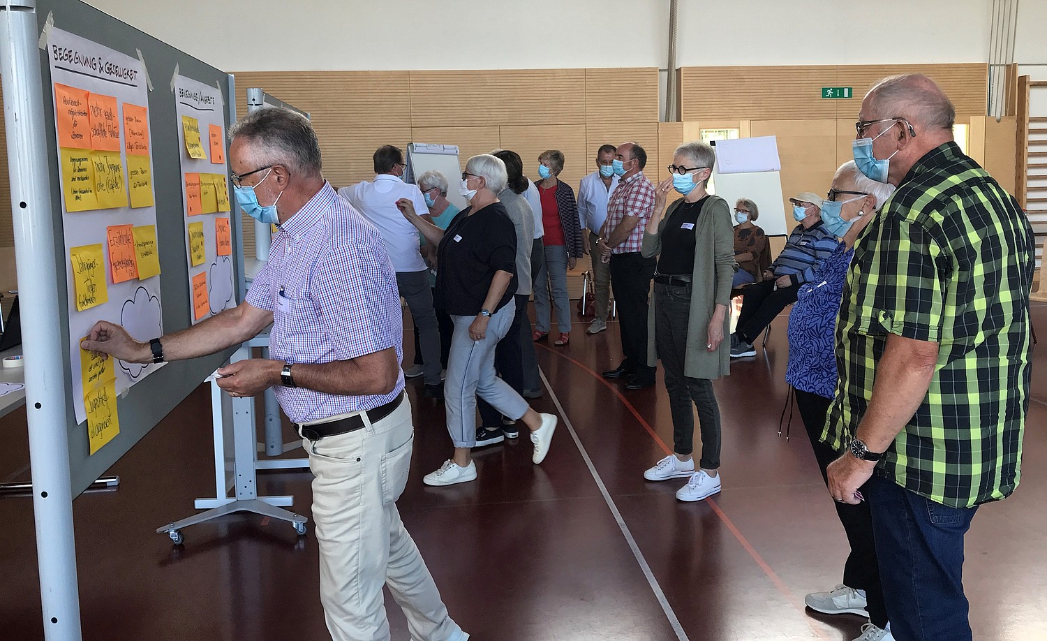 Im September 2021 wurde die ältere Bevölkerung zu einem Mitwirkungsanlass eingeladen. Gemeinsam gingen die Seniorinnen und Senioren folgenden Fragen nach: Was gefällt Ihnen besonders in Reichenburg? Wo liegen die Herausforderungen in Hinblick auf das Leben im Alter in der Gemeinde? Was für Visionen oder Projektideen haben Sie für Reichenburg?