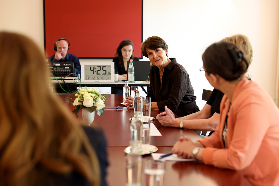 Der SGV war mit einer Delegation aus fünf Gemeindepräsidentinnen und seiner stellvertretenden Direktorin vertreten: Caroline Bartholet (Gemeindepräsidentin Niederbüren [SG]), Imelda Stadler (GP Lütisburg [SG]), Karin Spengler (GP Siblingen [SH]), Denise Neuweiler (GP Langrickenbach [TG]) sowie Silvia Troxler (GP Balgach [SG]) und Claudia Kratochvil (SGV). Er präsentierte im Deutschen Bundestag die Plattform PROMO Femina, ein praxisnahes Onlinetool mit über 120 konkreten Massnahmen, die Gemeinden und Lokalparteien unterstützen, um das politische Engagement von Frauen auf Gemeindeebene zu fördern. Die Konferenz endete mit einer Podiumsdiskussion zu den Chancen in der Kommunalpolitik und einem festlichen Empfang im Schloss Bellevue, dem Amtssitz des Deutschen Bundespräsidenten.