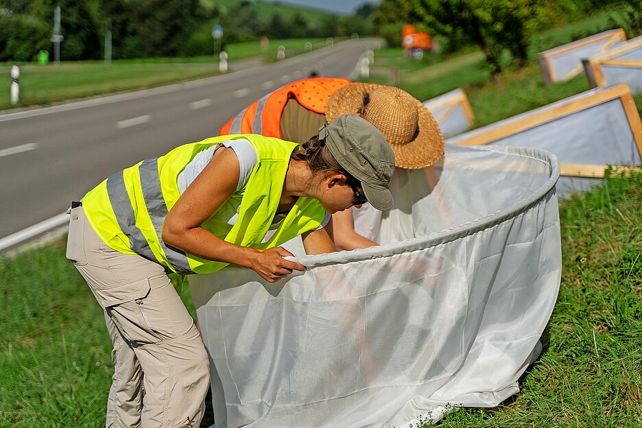 Doch was nützen diese Massnahmen effektiv? Ab wann gilt eine Mähmaschine als biodiversitätsfreundlich? Forschung dazu gibt es noch kaum. Antworten sucht die Studie, an der Lukas Bollack beteiligt ist und die vom Bundesamt für Strassen (Astra) sowie seinen deutschen und österreichischen Pendants in Auftrag gegeben wurde. Im Sommer 2023 wurden Feldversuche durchgeführt, die derzeit ausgewertet werden. Mit ersten Resultaten rechnet Bollack 2026. «Es hat sich als ziemlich schwierig erwiesen, eine standardisierte Messung durchzuführen», sagt Bollack. Denn je nach Grünfläche und Tageszeit variiert die Anzahl Insekten darin sehr stark. Zum Schluss behalf sich die Forschergruppe mit Insektenattrappen aus Wachs.