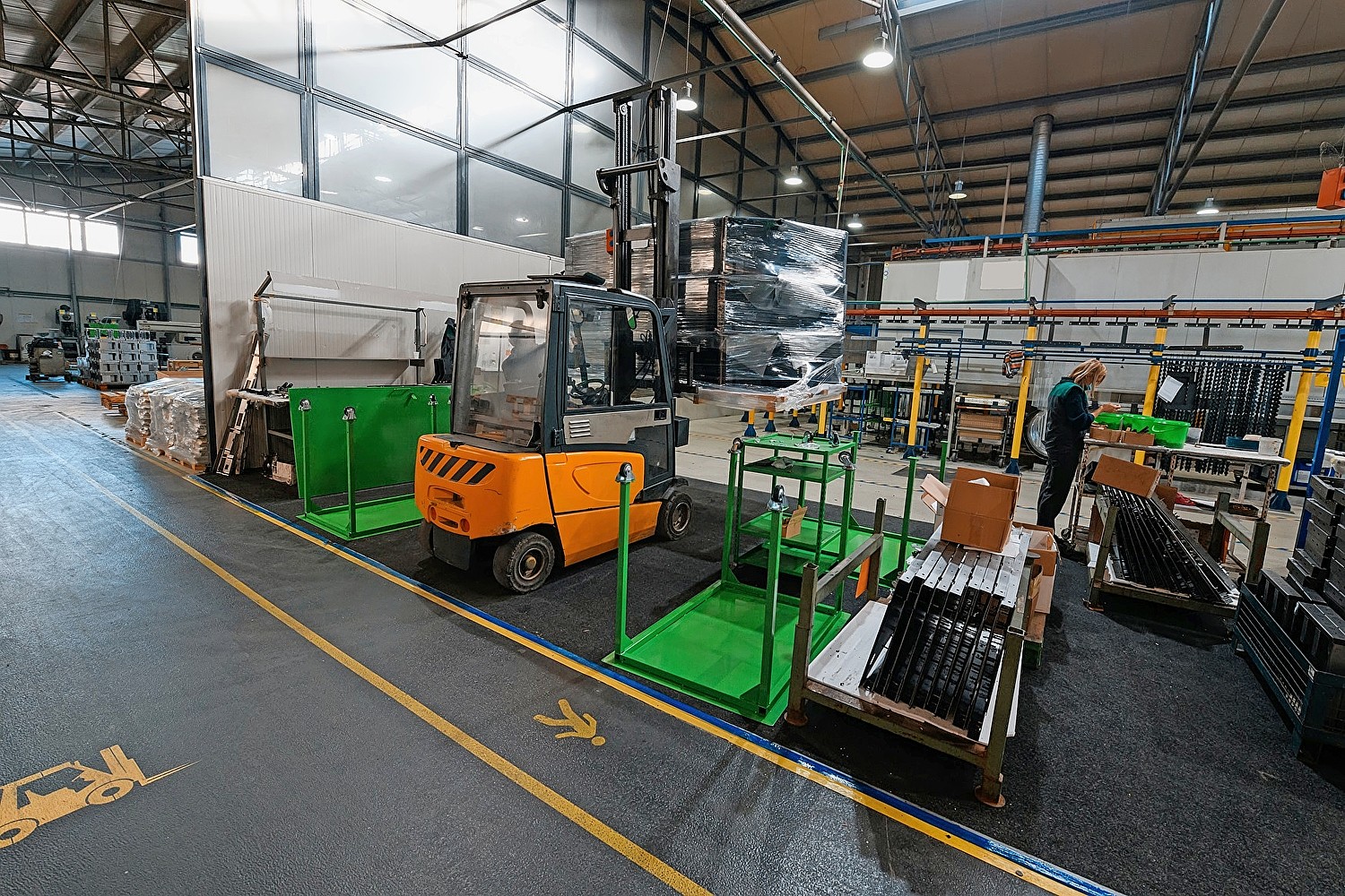 Kennzeichnung: Die Begrenzung von Verkehrswegen ist farbig, deutlich erkennbar und durchgehend auf dem Boden auszuführen. Dies soll durch mindestens fünf Zentimeter breite Streifen erfolgen. Dabei muss eine gut sichtbare Farbe in Abhängigkeit von der Bodenflächenfarbe ausgewählt werden. Aufgrund der vielen Unfälle mit Flurförderzeugen, etwa Gabelstaplern oder Hubwagen, empfiehlt es sich, besonders deren Verkehrswege deutlich von Gehwegen abzugrenzen. Dazu gibt es spezielle Bodenmarkierungsbänder, die selbst Drehungen, Wendungen und geschobenen Paletten standhalten können.