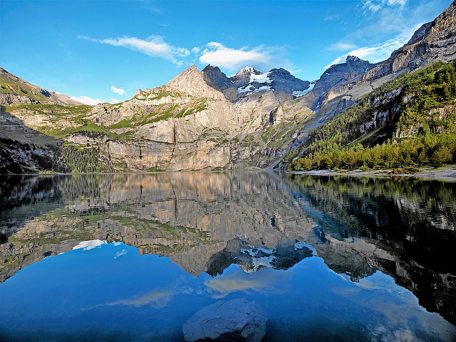 Der Oeschinensee ist mittlerweile bekannt für seine instabile Südseite. Vermutlich durch den Rückgang des Permafrosts haben sich die Terrainbewegungen rund um den Spitze Stei an der Nordflanke des Doldenhorns verstärkt. 2020 musste die Südseite des idyllischen Bergsees sogar gesperrt werden. Rund 20 Millionen Kubikmeter Fels sind am Spitze Stei in Bewegung. Falls alles auf einmal herunterkommt, wären die Folgen verheerend, vor allem für das im Tal liegende Dorf Kandersteg. Damit rechnen die Experten allerdings nicht.