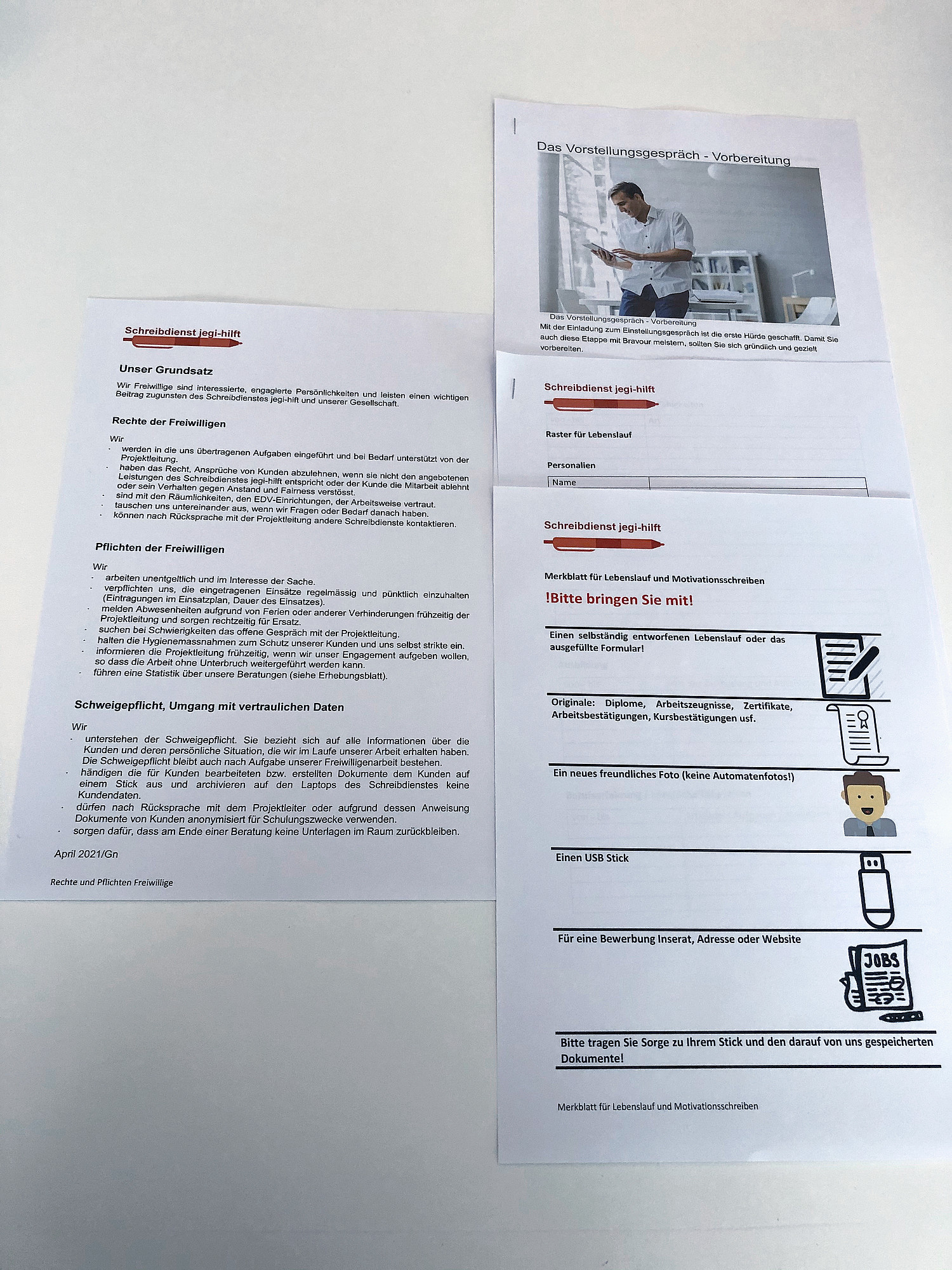 Unter der Dachmarke «jegi-hilft» gibt es in Jegenstorf (BE) Angebote wie das Begegnungskaffee, das Lernfoyer Deutsch, einen Mathematikkurs, Betreutes Wohnen und seit Herbst 2020 auch den «Schreibdienst jegi-hilft».