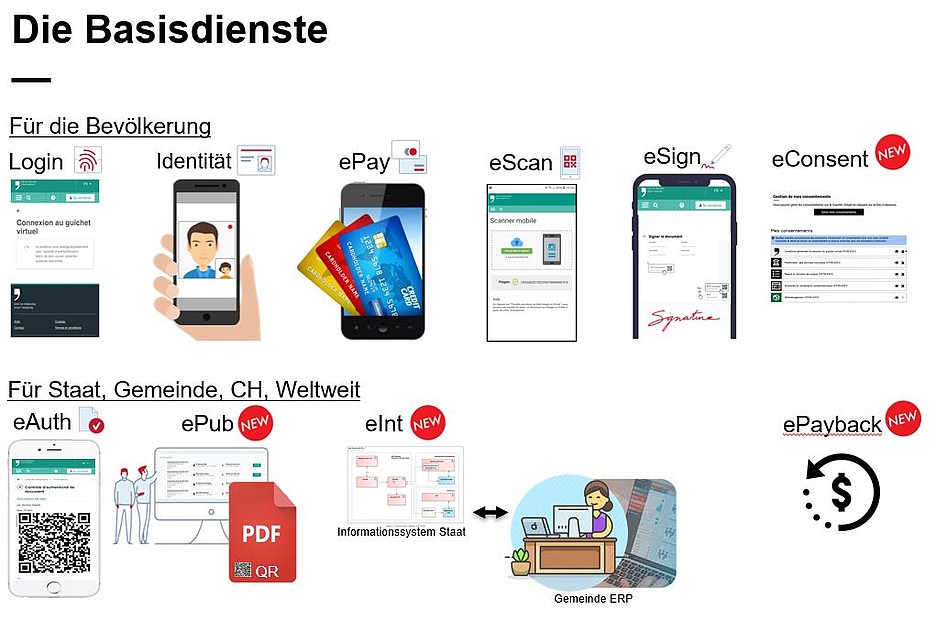 Stéphane Schwab: Ziel ist es, dass die Freiburger Bevölkerung E-Government-Dienstleistungen sowohl des Kantons als auch der Gemeinden über eine Plattform beziehen kann. Für die Gemeinden stellt der Kanton einen virtuellen Schalter und Basisdienste zur Verfügung. Die Basisdienste umfassen zum Beispiel ein Programm zur Authentifizierung von Dokumenten, einen Zahlungsdienst oder ein Log-in für die Bevölkerung. Diese Basisdienste erlauben es den Gemeinden, sich auf die Entwicklung der Dienstleistungen zu konzentrieren.