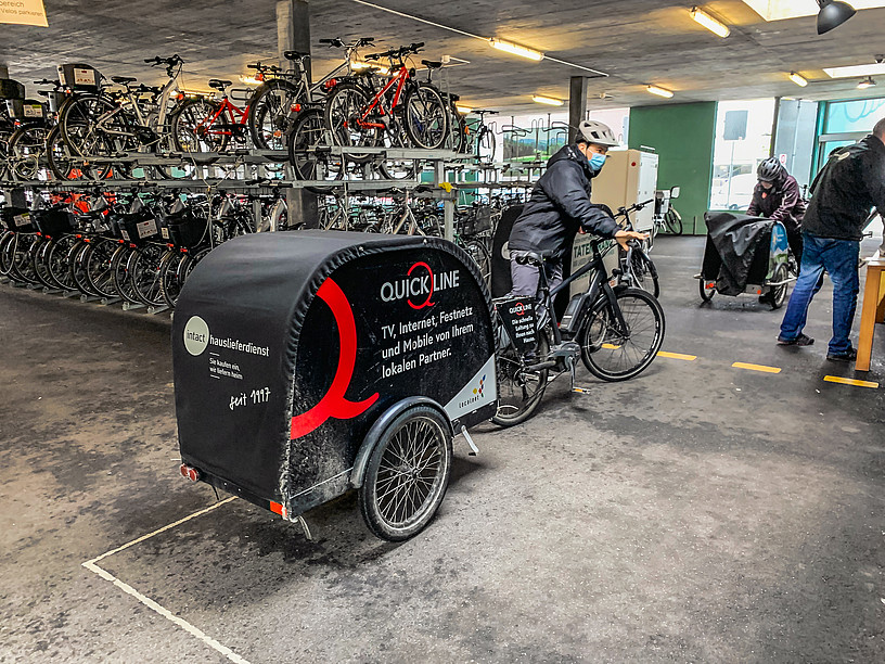 Patrick Tinner, Leiter der Mobilitätszentrale Burgdorf, sagt: «Wir helfen den Programm-Teilnehmenden, fit für den ersten Arbeitsmarkt zu werden. Wir trainieren mit marktnahen Dienstleistungen und aktueller Infrastruktur, wie die App viaVelo oder E-Bikes.» Patrick Tinner sowie der Arbeitsagoge Yves Bichsel sind auch selbst immer wieder einmal als Kuriere unterwegs: Nicht nur zur Unterstützung und Begleitung, sondern auch, wenn wegen Ausfällen «Not am Mann» ist (90 Prozent der Velo-Kuriere in Burgdorf sind Männer). Die Kuriere müssen allerdings wetterfest und fit sein, auch wenn sie mit E-Bikes unterwegs sind. Immerhin legen sie zwischen 20 und 70 Kilometer pro Arbeitstag zurück, und das Emmental hat bekanntermassen viele Hügel.