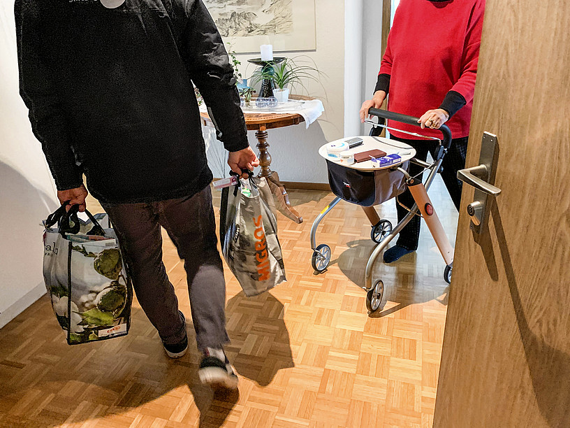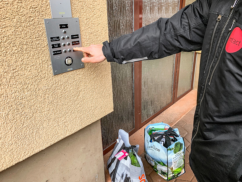 9.20 Uhr in Burgdorf: Ein Mann knüpft in einem Supermarkt zwei Einkaufstaschen mit aufgeklebten QR-Codes zu, klebt an beide einen Lieferschein mit der Adresse und dem Namen der Empfänger und stellt die Tüten in ein Regal. «Ich habe für meine Schwiegereltern eingekauft und gebe die Taschen nun dem Hauslieferdienst mit», erklärt er. Er kauft zwar gerne für sie ein, doch nicht immer hat er Zeit, die Einkäufe auch selber vorbeizubringen. Dass er dies dem Lieferdienst der Stiftung intact überlassen kann, bezeichnet er darum als grosse Erleichterung. «Meine Schwiegereltern haben ein Abonnement für den Hauslieferdienst von intact, so habe ich auch mit der Bezahlung dieses Angebotes nichts zu tun.»