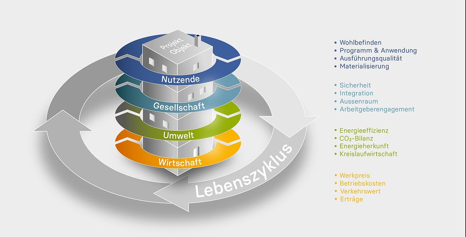 Es wird immer relevanter, Bauvorhaben nachhaltig zu gestalten und umzusetzen. Besonders starkes Gewicht erhalten die Klima- und Energieziele, eine trotz erhöhter Komplexität wirtschaftliche Realisierung und die gesellschaftliche Akzeptanz. Nebst diesen übergeordneten Nachhaltigkeitsaspekten bestehen unzählige weitere regulatorische Vorgaben und Einzelinteressen, die Zielkonflikte beinhalten und die es folglich ausgewogen abzuwägen und auf Erfüllung zu prüfen gilt.